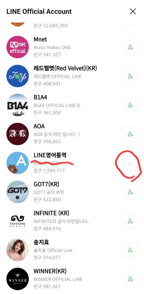 바로 클릭해보면 다양한 계정을 보실 수 있는데 거기서 중국어와 영어 번역을 찾아 친구추가 해주시면됩니다.